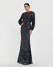 Navy Sequin Long Sleeve Blouson Evening Gown